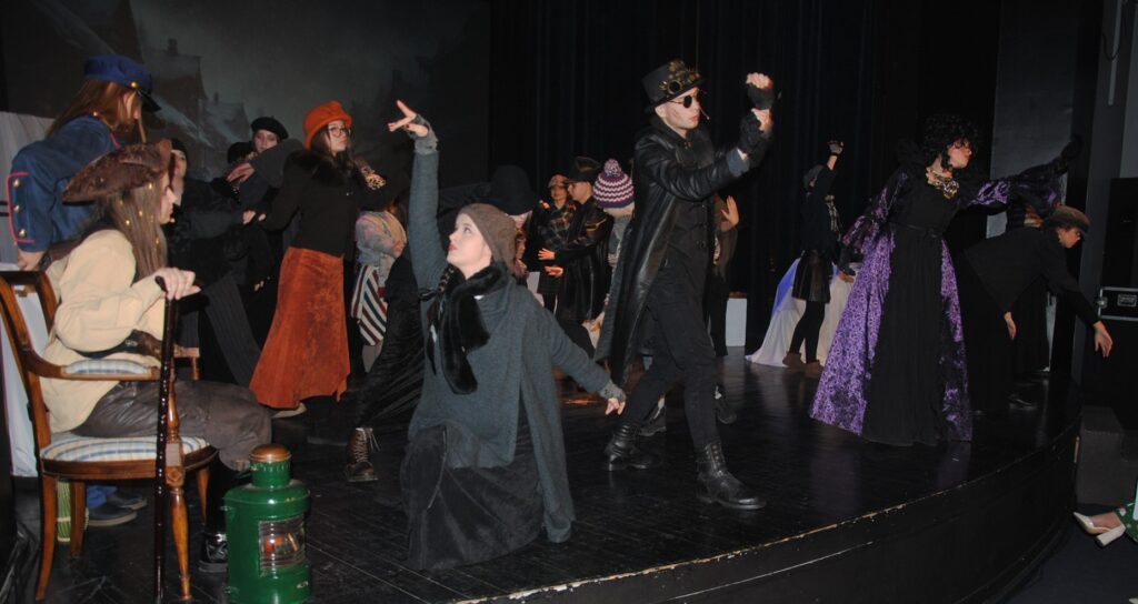 Wigilijne spotkanie uświetnił spektakl „Zanim nadejdzie dobro” w wykonaniu uczniów III Liceum Ogólnokształcącego w Brodnicy. Scena teatralna w BDK jest doskonałym miejsce dla poszukiwań teatralnych form, eksperymentów, jest swego rodzaju laboratorium. Zło, dobro, nienawiść, niezgoda, oszustwo – symbolika tych zjawisk została zaprezentowania w spektaklu, inspirowanego luźną animacją oskarowego „Klausa”, na podstawie twórczości jednego z pisarzy skandynawskich.  Nawet motywy bajkowe z udziałem Klausa, czyli św. Mikołaja, bardzo ławo można było odczytać, nie pozostawały bezrefleksyjnymi.